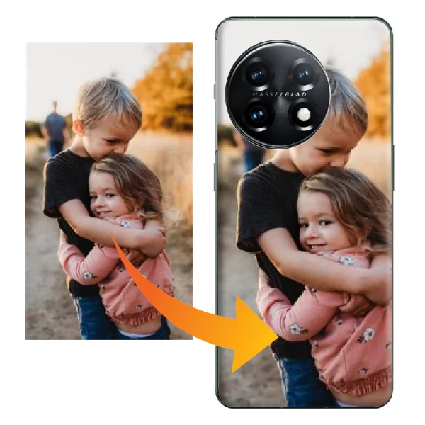 Création en ligne de coque silicone personnalisée OnePlus 11 avec vos plus belles photos, images et texte. Livraison rapide.