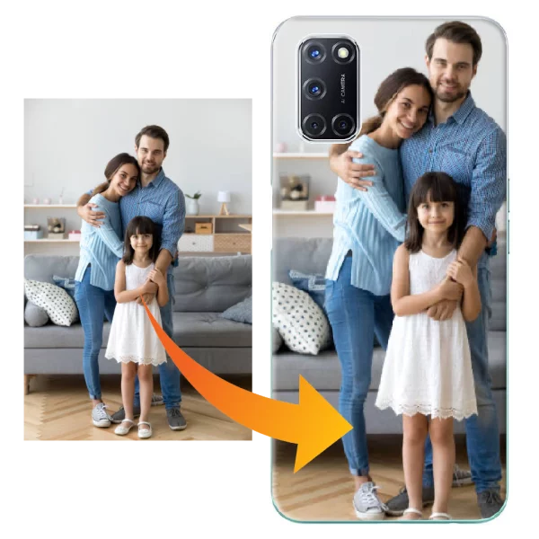 Création en ligne de coque silicone personnalisée Oppo A52 avec vos plus belles photos, images et texte. Livraison rapide.