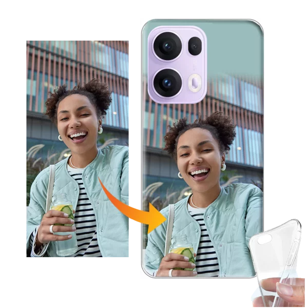 Création en ligne de coque silicone personnalisée OPPO Reno13 5G avec vos plus belles photos, images et texte. Livraison rapide.