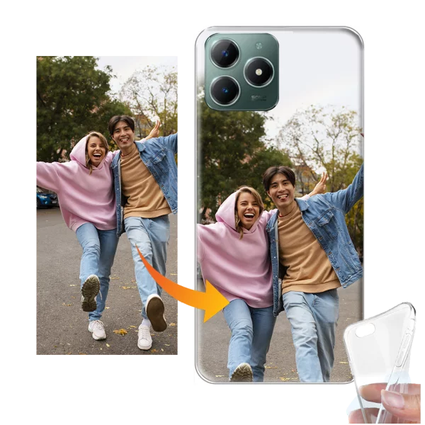 Création en ligne de coque silicone personnalisée Realme C61 avec vos plus belles photos, images et texte. Livraison rapide.