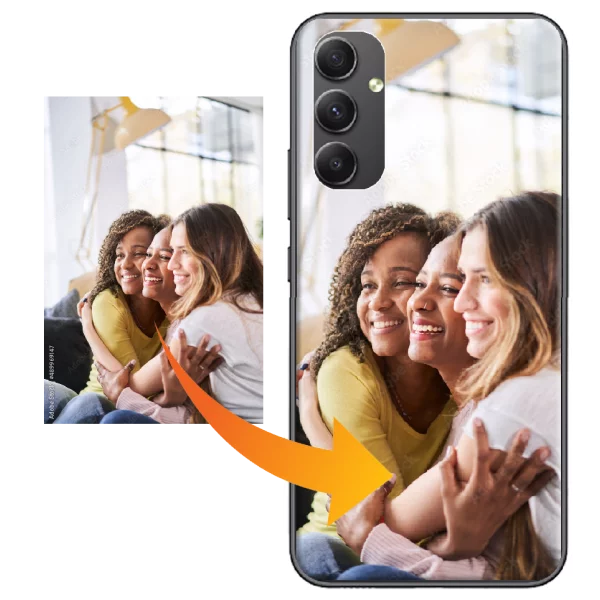Création en ligne de coque silicone personnalisée Samsung Galaxy A34 5G avec vos plus belles photos, images et texte. Livraison rapide.