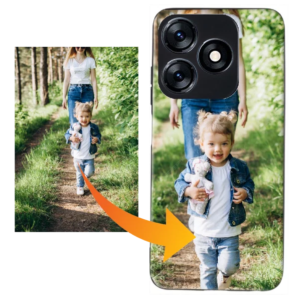 Création en ligne de coque silicone personnalisée Tecno Spark 10 avec vos plus belles photos, images et texte. Livraison rapide.